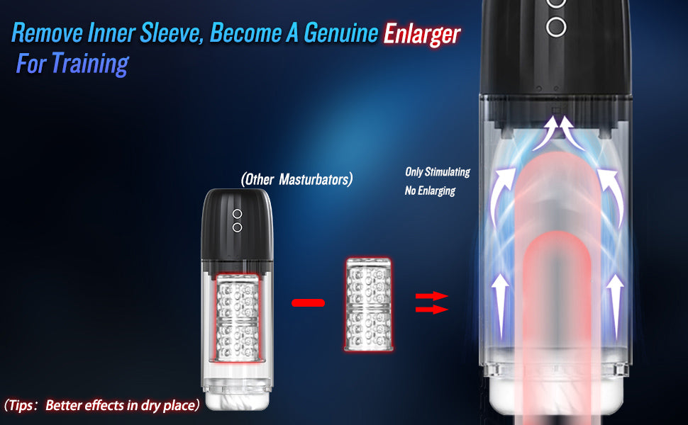 - 🚀【Pump Enlargement Trainer for Longer, Harder, Stronger】 This is more than just a masturbator - when you remove the inner sleeve and activate the sucking function, it becomes a pump. The vacuum pressure will strengthen the shaft muscles to promote stronger, longer-lasting rigidity. A transparent viewing window lets you see the growth. The vacuum pump is perfect for sex foreplay to prolong intimacy and improve sex!